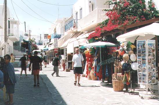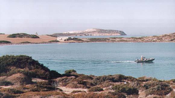 Antiparos ist nur 35qkm groß und liegt 2km (engste Stelle) westlich von Paros. Man erreicht Antiparos von Parikia aus mit stündlich verkehrenden Personenschiffen. Kleine Autofähren benutzen den kürzeren Weg von Pounta aus. Auf der Insel gibt es nicht mehr als den Ort Antiparos, eine Tropfsteinhöhle, einen Campingplatz und ein paar gute Strände. Hier ist alles ein bißchen persönlicher, und man kennt sich spätestens nach dem zweiten Tag auf der Insel. Der beste Strand ist wohl der Camping-Beach im Norden (15 Gehminuten von der Chora). Von hier aus hat man einen wunderschönen Blick auf Paros im Osten, und einer Antiparos vorgelagerten Mini-Insel im Norden. Weht kein Wind, hat man auch so gut wie keinen Wellengang, und man glaubt fast an einem See zu liegen. Das Meer ist hier so seicht, dass man sogar mit Gepäck auf den Kopf auf die gegenüberliegende Mini-Insel spazieren kann, wenn man in etwa die Gehrichtung kennt (Leute beobachten!). An der tiefsten Stelle steht einem zwar das Wasser bis zum Hals, aber dann geht es wieder aufwärts. |